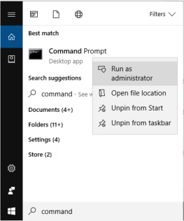 You can get a log of the install process and send this to support@ability.com. Get an admin command prompt - type command into the Windows Search box, right-click over Command Prompt and select Run as administrator as per screenshot: